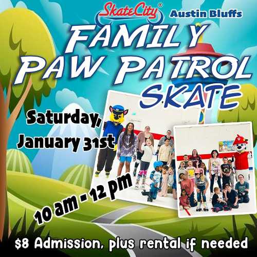 Bring the family out for a Paw Patrol Skate at Skate City Austin Bluffs on Saturday, January 31st from 10am–12pm. Kids can meet their favorite Paw Patrol characters, skate alongside friends, and enjoy plenty of photo opportunities on the rink. Admission is just $8, with skate rental available if needed. It’s a fun, energetic morning perfect for younger skaters and their families.