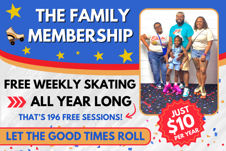 Skate FREE every week with a membership that costs only $10 per person for the entire year. It’s the easiest & most affordable way to build a weekly family tradition. Show your pass at check-in and enjoy the fun!