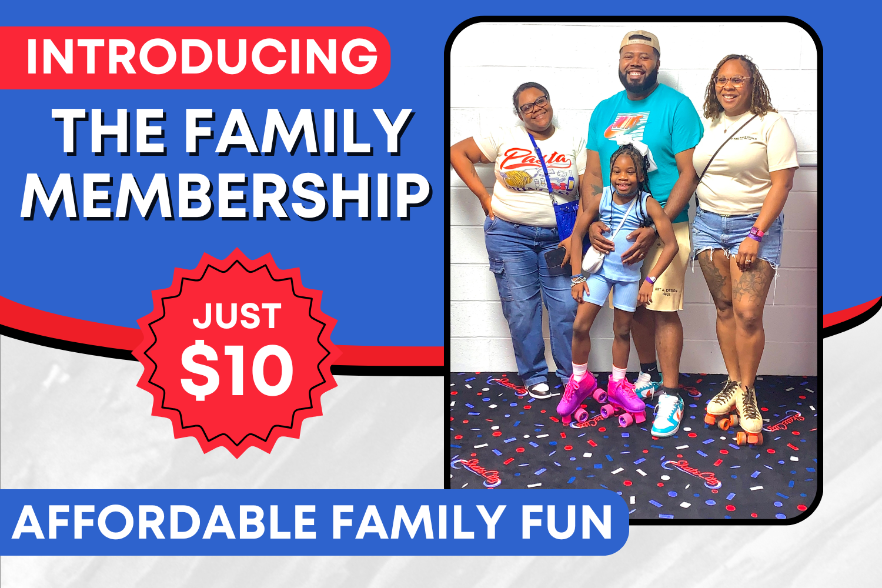With a Skate City Family Membership, families skate FREE every weekend. Come out to the rink on Friday nights, Saturday mornings, and Sunday evenings and skate for FREE. Membership is just $10 per family member!